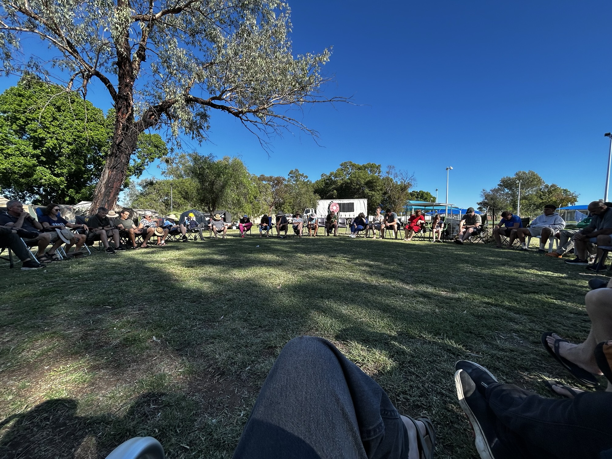 The majority of communication takes place through close relationship, turning up, and participating in the life of the river convention. Setting up, packing up, clearing rubbish, washing dishes, cleaning bathrooms, praying together, giving people a lift, sitting around the fire are all opportunities to find out what’s going on. Being connected, together is the best source of communication.
